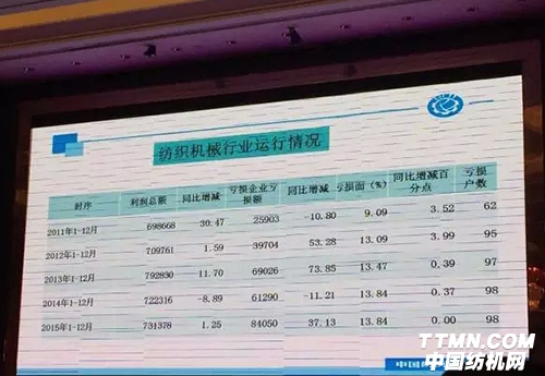 上午9點會議準(zhǔn)時開始,協(xié)會秘書長徐林對秘書處2015年工作情況做了匯報;隨后,中國紡機協(xié)會副會長顧平做了紡機行業(yè)2015年經(jīng)濟運行情況報告。以下為行業(yè)運行具體報告: